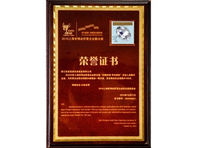 2010上海世博會(huì)民營企業(yè)聯(lián)合館榮譽(yù)證書